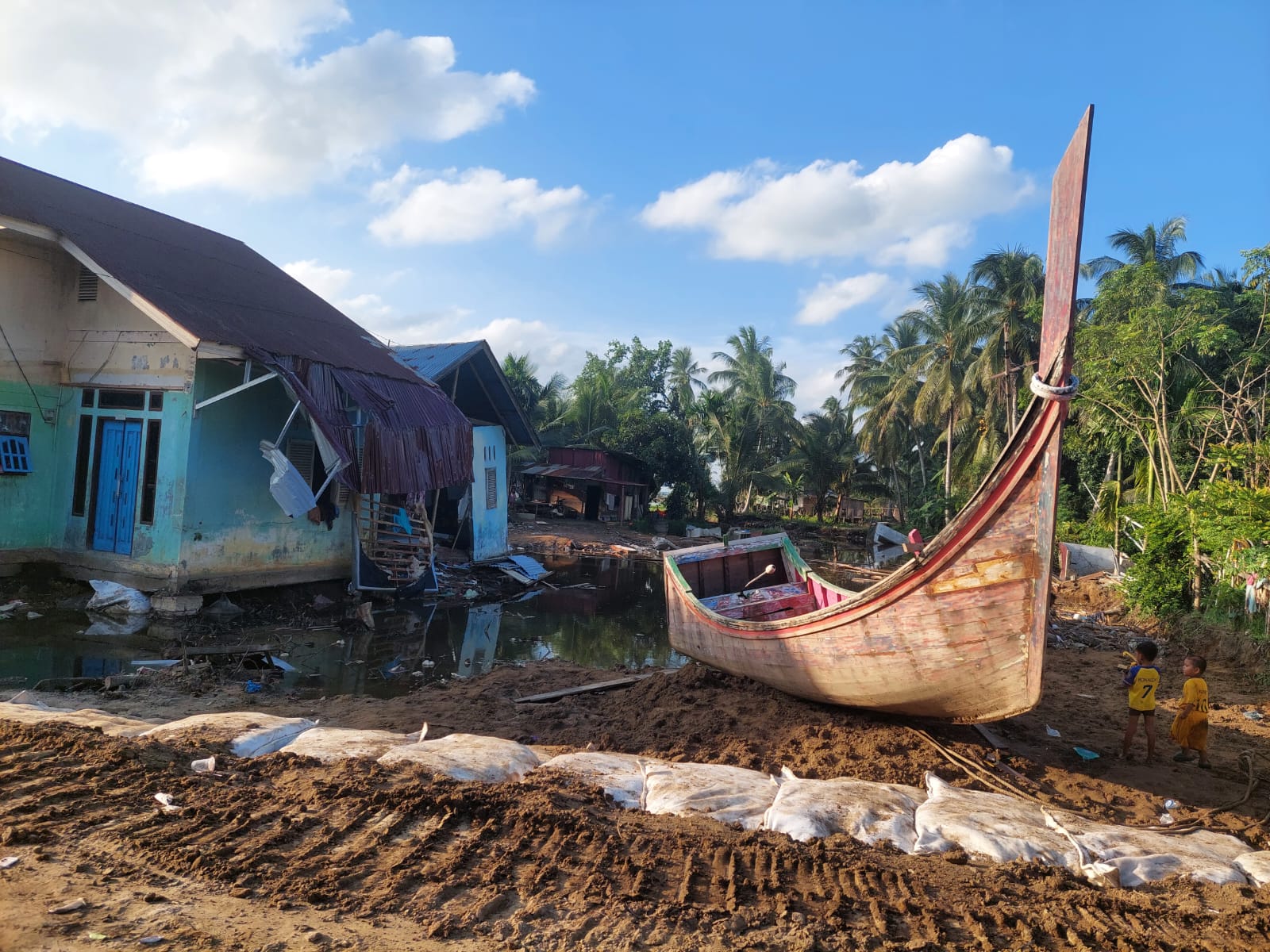 Selain korban manusia, bencana juga mengakibatkan kerusakan permukiman warga.