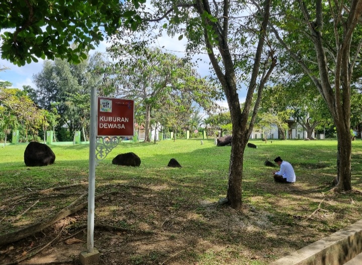 Di hadapannya, tak ada nisan. Tak ada nama. Tak ada penanda. Hanya hamparan tanah dan batu-batu hitam tempat ratusan, bahkan ribuan korban tsunami dimakamkan tanpa sempat dikenali.