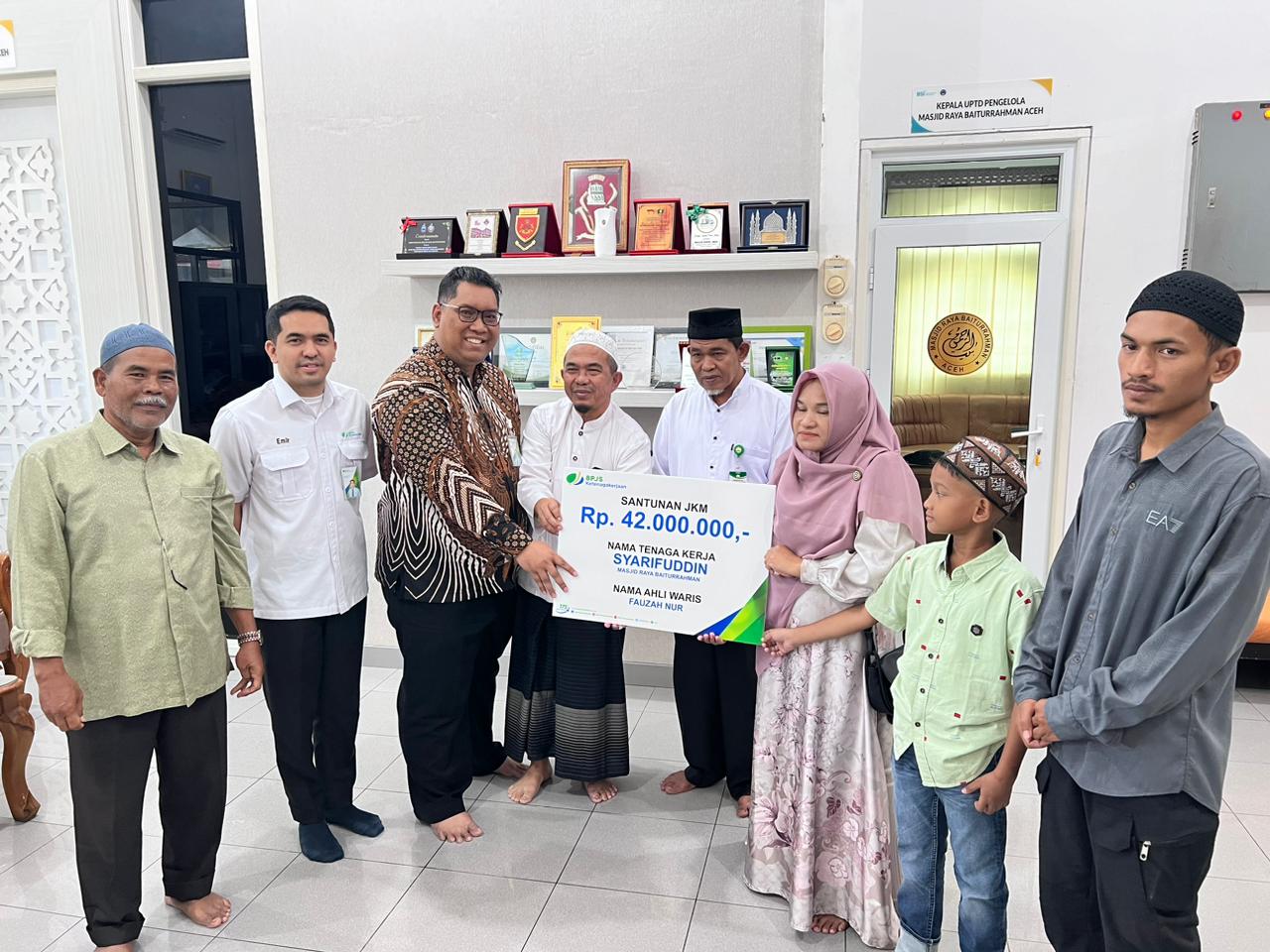Kepala UPTD Masjid Raya Baiturrahman, Iskandar, menyampaikan apresiasi dan terima kasih kepada BPJS Ketenagakerjaan atas santunan yang diberikan kepada keluarga almarhum.