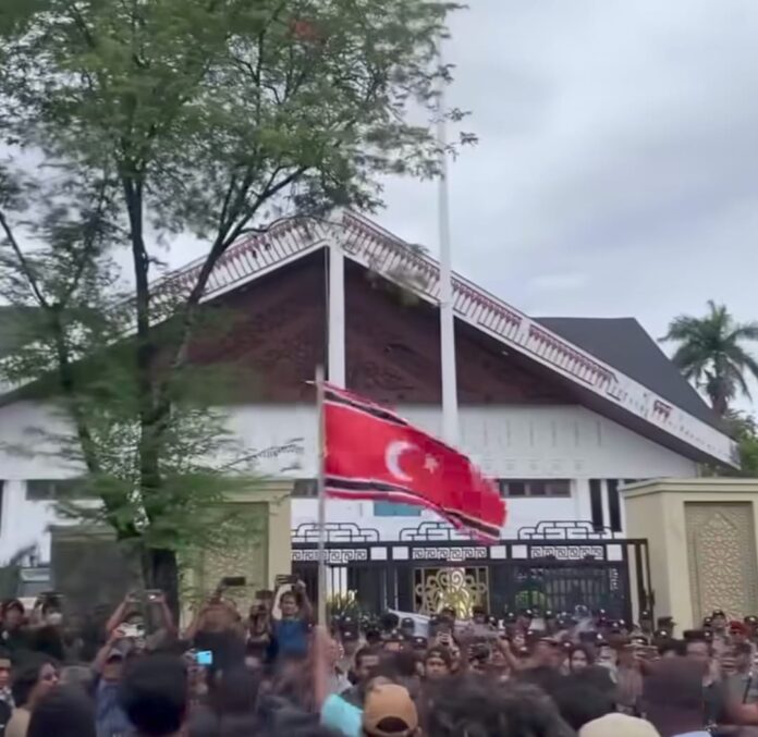 Banda Aceh (Waspada Aceh) – Bendera Bulan Bintang dengan dasar merah dan bendera berlambang tengkorak One Piece berkibar di depan Gedung Dewan Perwakilan Rakyat Aceh (DPRA), Senin (1/9/2025) sore ini.