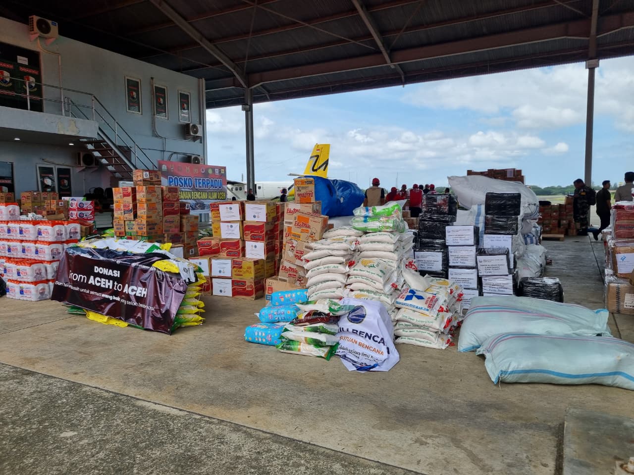 Setiap hari, antara 20 hingga 25 ton logistik dikirim melalui udara dari Posko Utama di Lanud Sultan Iskandar Muda.