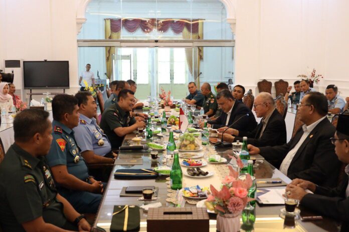 Banda Aceh (Waspada Aceh) – Komandan Sekolah Staf dan Komando TNI (Sesko TNI), Marsekal Madya TNI Arif Widianto, S.A.B., M.Tr.(Han)., CHRMP., beserta rombongan melakukan kunjungan kehormatan kepada Wali Nanggroe Aceh, Tgk. Malik Mahmud Al-Haythar, di Meuligoe Wali Nanggroe, Kamis (30/10/2025) lalu.