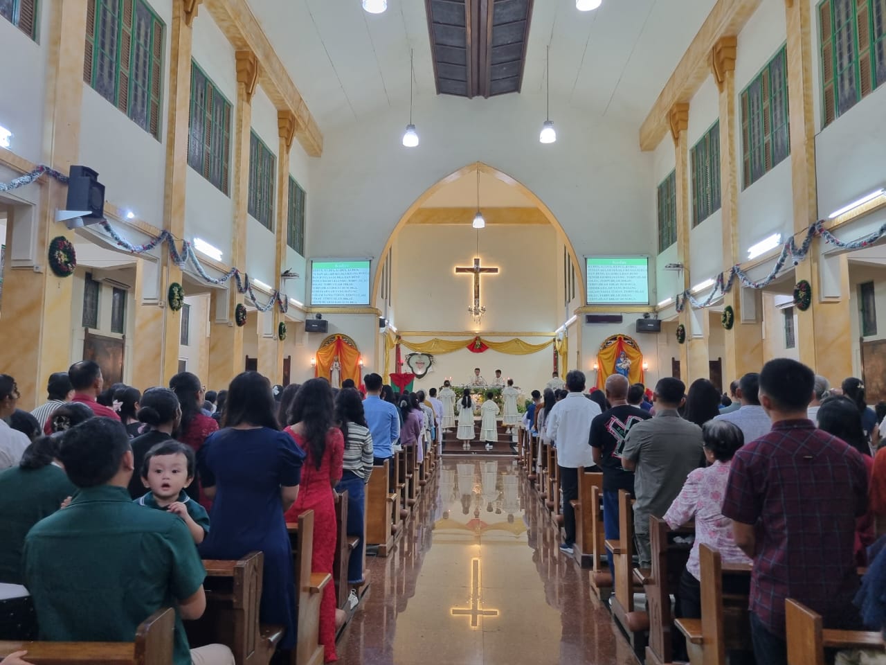Pantauan Waspadaaceh.com, umat mulai berdatangan sejak sore hari dan memenuhi bangku-bangku gereja dengan tertib. Suasana tenang terasa sejak awal misa, tanpa dekorasi berlebihan.