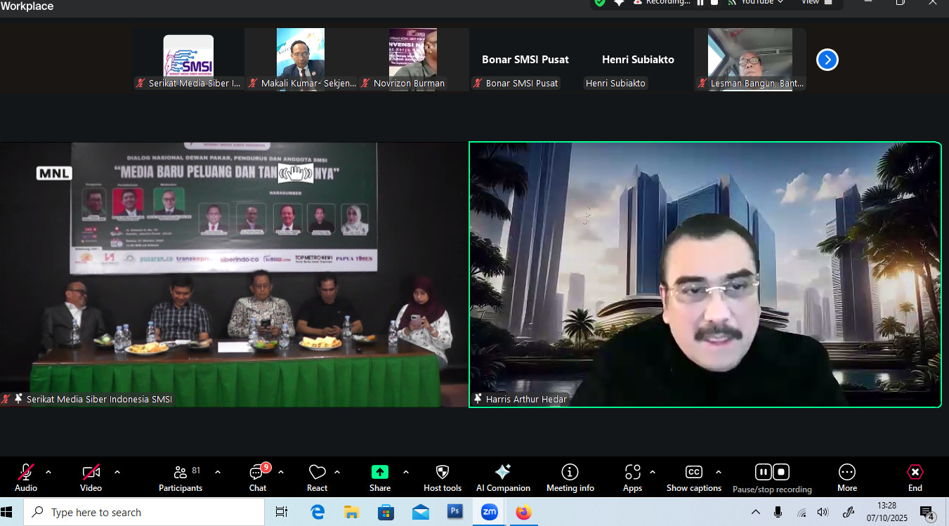 Dialog nasional yang mengambil tempat di Kantor SMSI Pusat, Jalan Vereran, Jakarta, dan diperluas dengan aplikasi zoom berlangsung Selasa (7/10/2025).