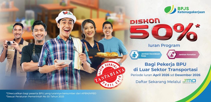Sebagai informasi, iuran normal program JKK dan JKM bagi pekerja BPU sebelumnya sebesar Rp16.800 per bulan. Melalui kebijakan ini, peserta mendapatkan diskon 50 persen sehingga iuran menjadi lebih terjangkau, yakni Rp8.400 per bulan.