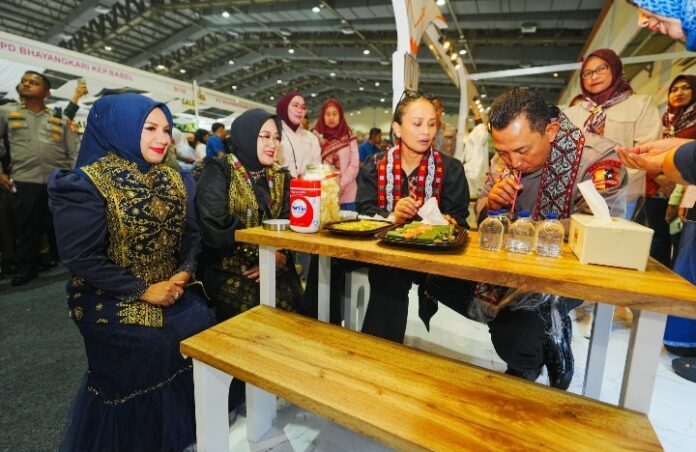 Banda Aceh (Waspada Aceh) – Kapolri Jenderal Polisi Listyo Sigit Prabowo bersama Ketua Umum Bhayangkari Ny. Juliati Sigit Prabowo menyempatkan diri menikmati kupi khop (kopi khas Aceh) saat mengunjungi stan Pengurus Daerah (PD) Bhayangkari Aceh dalam ajang Bazar Kreasi Bhayangkari Nusantara 2025 di Jakarta Convention Center (JCC), Minggu (27/7/2025).