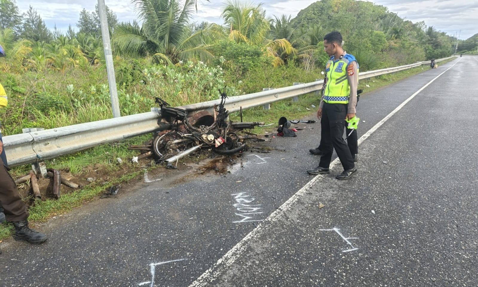 “Berdasarkan kronologi kejadian, mobil Honda Brio melaju dari arah Meulaboh menuju Banda Aceh. Sementara becak motor datang dari arah berlawanan dan tidak dilengkapi lampu utama, pengendaranya hanya menggunakan lampu senter di kepala sebagai penerangan,” kata Ferianto.