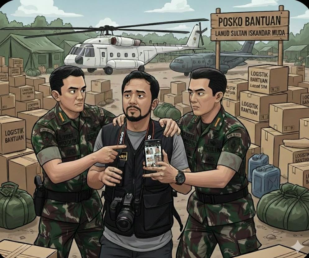 Banda Aceh (Waspada Aceh) – Komite Keselamatan Jurnalis (KKJ) Aceh mengecam tindakan aparat TNI yang merampas ponsel serta menghapus rekaman kerja jurnalis Kompas TV Aceh, Davi Abdullah, saat bertugas di Lanud Sultan Iskandar Muda (SIM), Aceh Besar, Kamis (11/12/2025).