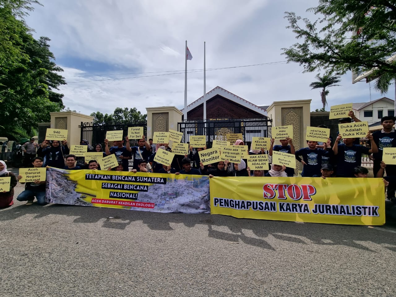 Koordinator aksi, Aditya, menyatakan penetapan status bencana nasional menjadi langkah krusial agar negara dapat mengambil alih penanganan secara penuh dan terkoordinasi.