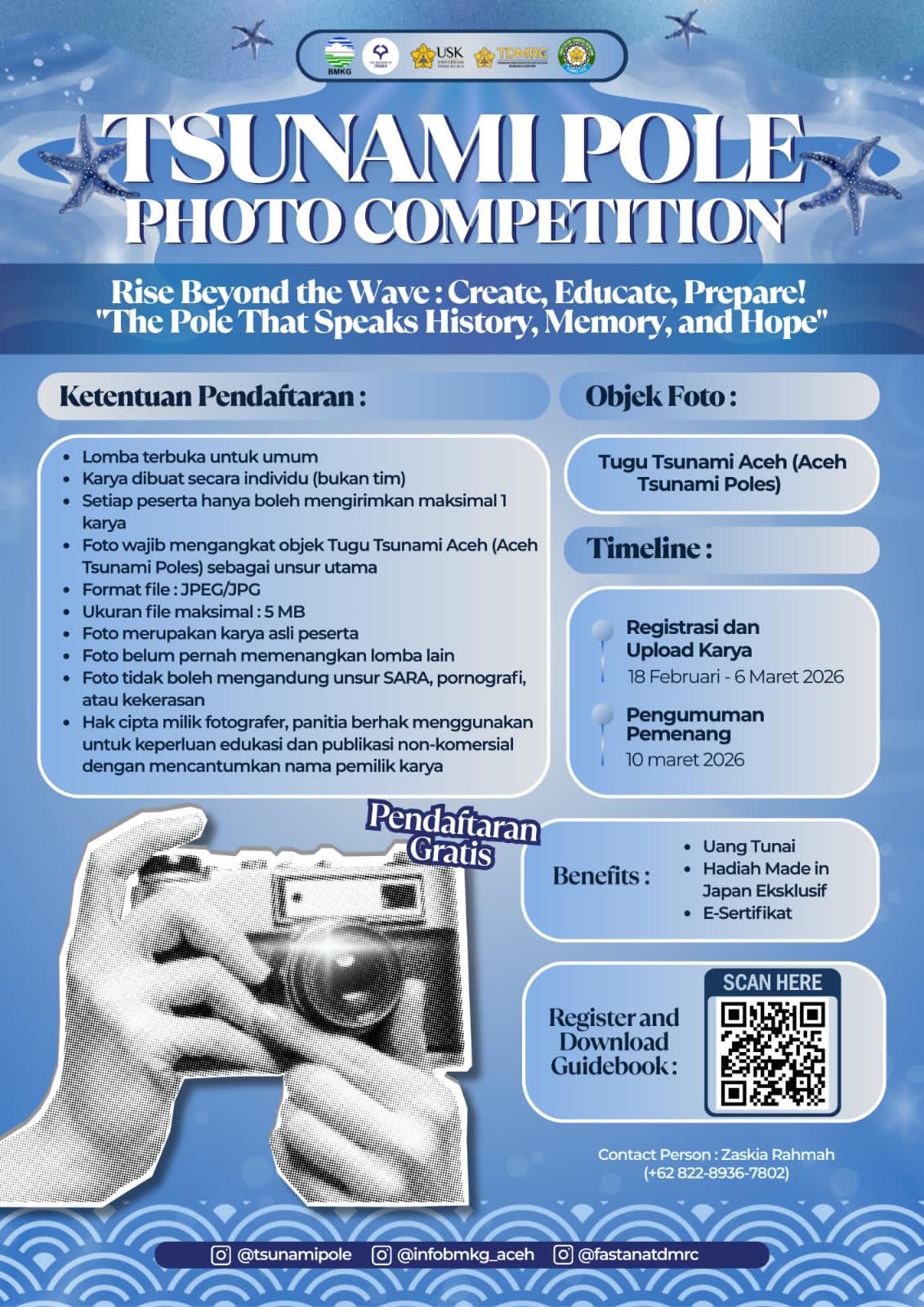 Informasi lebih lanjut mengenai lomba dapat diakses melalui akun Instagram @tsunamipole, @fastanatdmrc, dan @infobmkg_aceh, atau menghubungi panitia melalui nomor 0822-8936-7802 (Zaskia). (*)