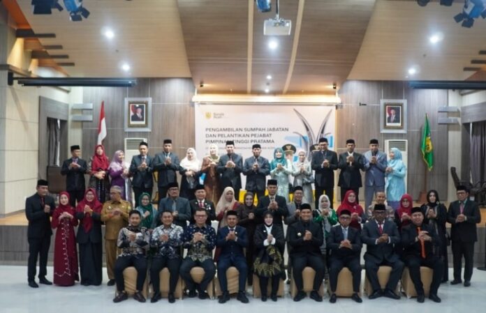 Banda Aceh (Waspada Aceh) – Wali Kota Banda Aceh Illiza Sa’aduddin Djamal melantik dan mengambil sumpah jabatan 17 pejabat tinggi pratama di lingkungan Pemko Banda Aceh, Senin, (6/10/2025) sore.
