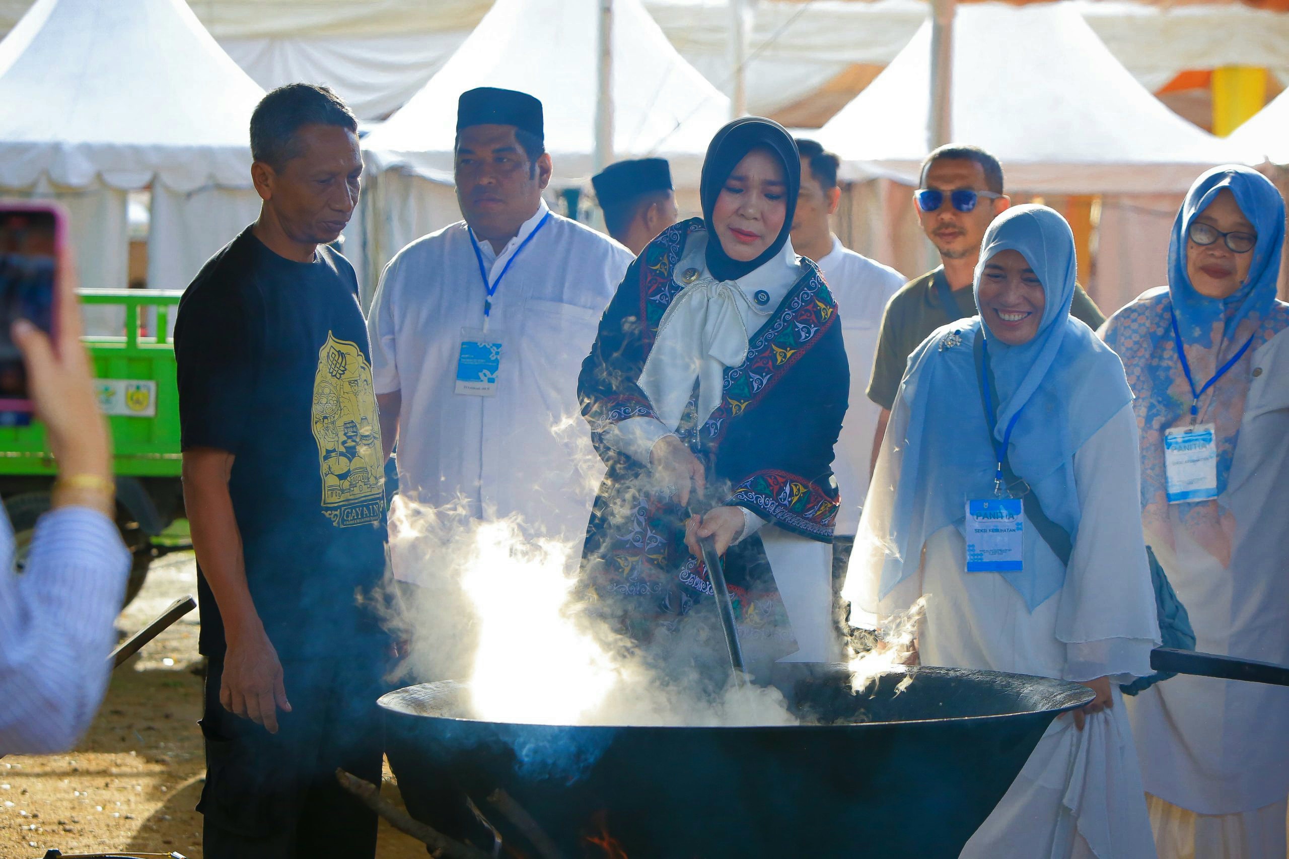 Di panggung Sanggamara, Blang Padang, Illiza-Afdhal menyuguhi tamu istimewanya dengan dua Idang Meulapeh . Menteri Fadli Zon pun dipersilakan untuk membuka “sange” berlapis “seuhap” yang menjadi penutup idang maulid setinggi satu meteran.