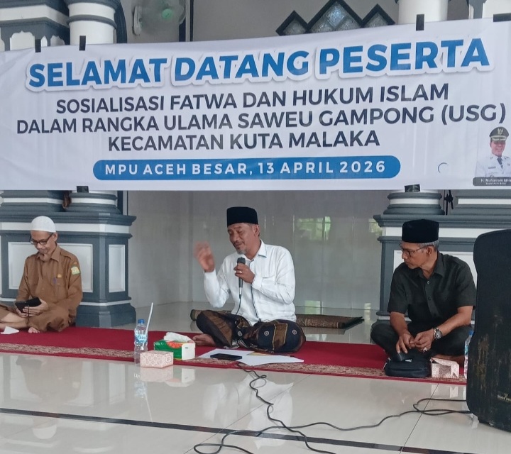 Aceh Besar (Waspada Aceh) – Majelis Permusyawaratan Ulama (MPU) Aceh Besar menggelar sosialisasi empat fatwa penting di Kecamatan Kuta Malaka, Senin (13/4/2026).
