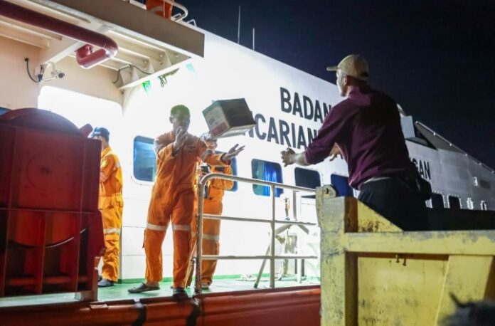 Selain kapal Express Bahari, Mualem juga memantau proses bongkar muat logistik yang dibawa menggunakan kapal milik Basarnas yang lebih dulu sandar di pelabuhan tersebut.