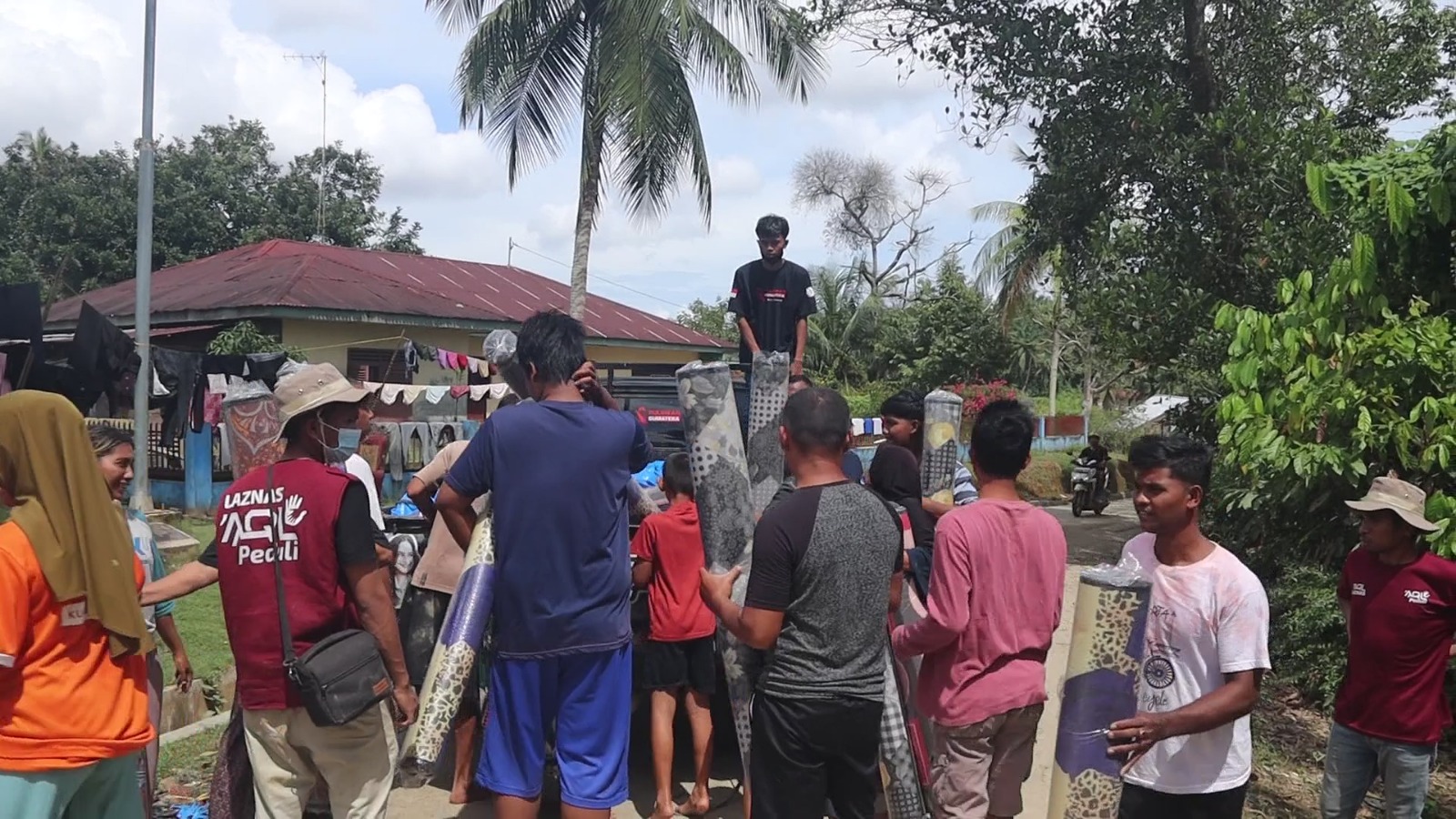 Azmi menambahkan bahwa bantuan yang diserahkan meliputi tikar, selimut, dan kelambu. “Tikar membantu mereka beristirahat di tengah kondisi lantai yang belum sepenuhnya bersih, selimut untuk melawan cuaca, serta kelambu untuk memitigasi serangan nyamuk yang biasanya mewabah pasca-banjir,” imbuhnya.
