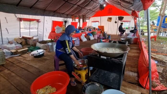 Sejak 29 November, dapur umum yang dikelola Pemkab Pidie Jaya bekerja sama dengan Kementerian Sosial RI menyajikan dua kali porsi makanan per hari.
