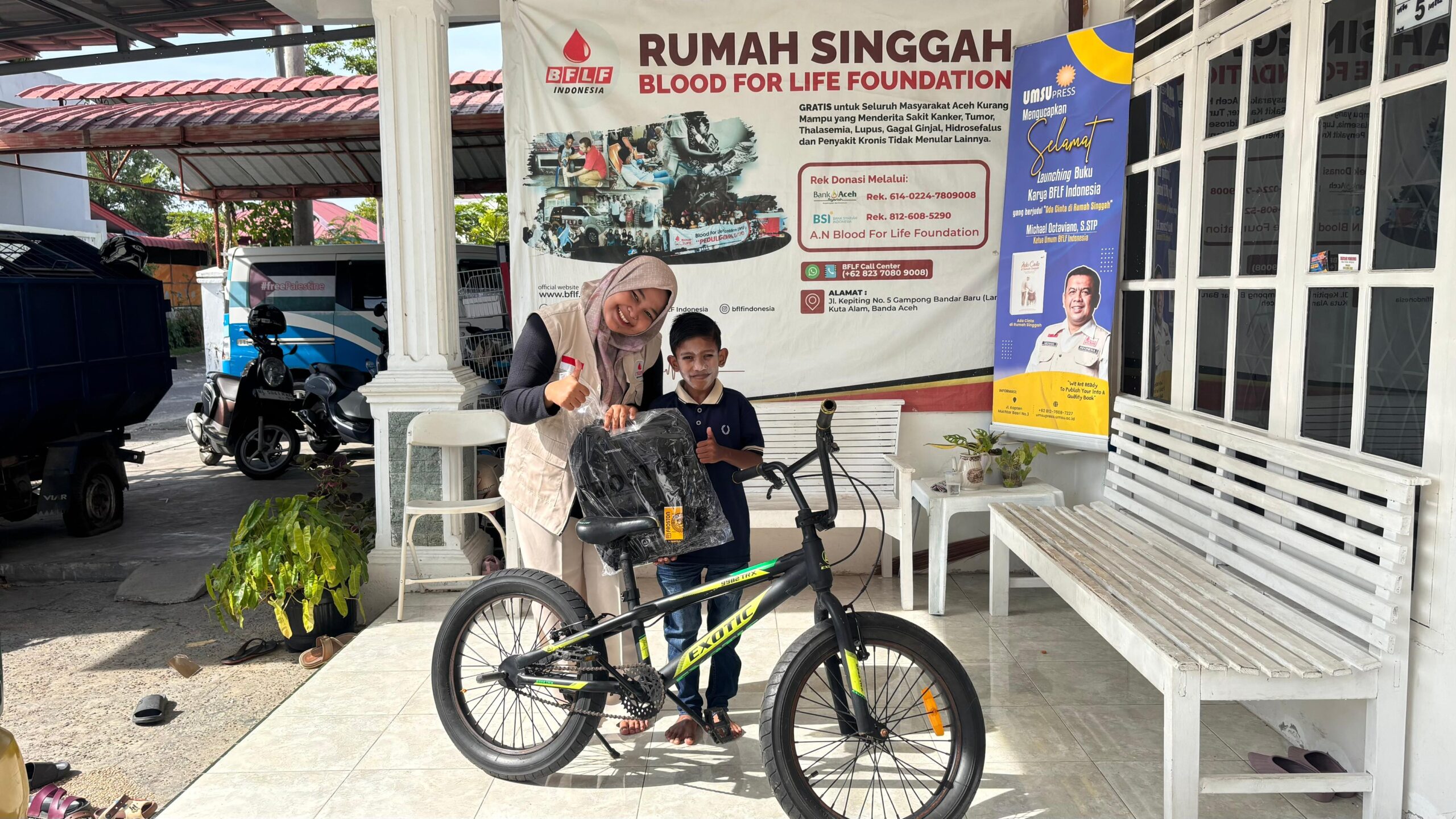 Aceh Utara (Waspada Aceh) – Blood For Life Foundation (BFLF) menyerahkan satu unit sepeda gratis kepada seorang pelajar penyintas banjir di Kabupaten Aceh Utara sebagai upaya mendukung pemulihan pendidikan anak terdampak bencana.