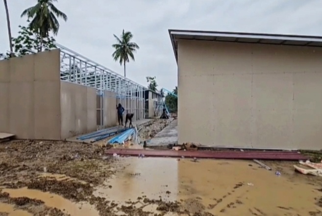 Setelah material sampai, proses lanjutan pembangunannya terus dikebut walau kondisi cuaca dilanda hujan deras. Ditargetkan pada pertengahan bulan suci Ramadhan bisa ditempati oleh masyarakat.