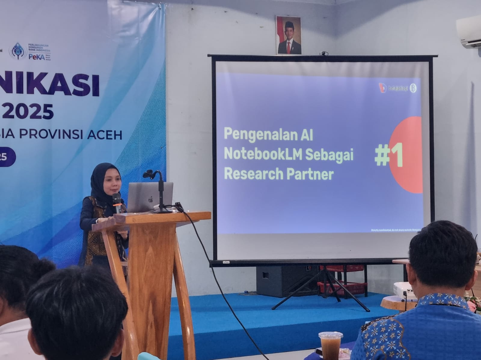 Dalam pemaparannya, Hesti turut memperkenalkan tool NotebookLM, yang dapat membantu jurnalis dalam melakukan riset dan mengelola data berbasis dokumen.