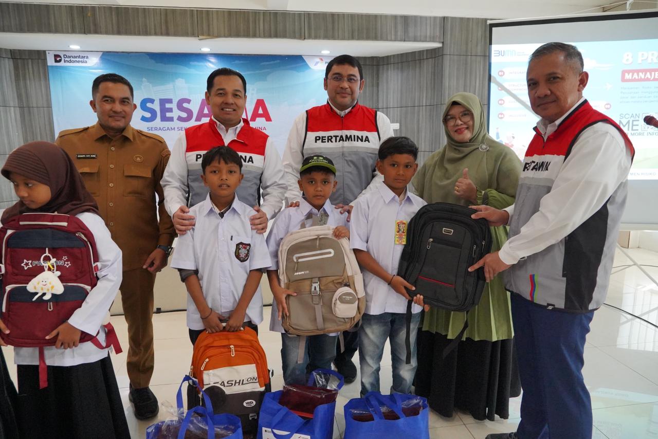 Acara penyerahan bantuan program Seribu Seragam Sekolah Anak bersama Pertamina (SESAMA) ini berlangsung di Kantor Pertamina Patra Niaga, Banda Aceh, Senin (19/1/2026).