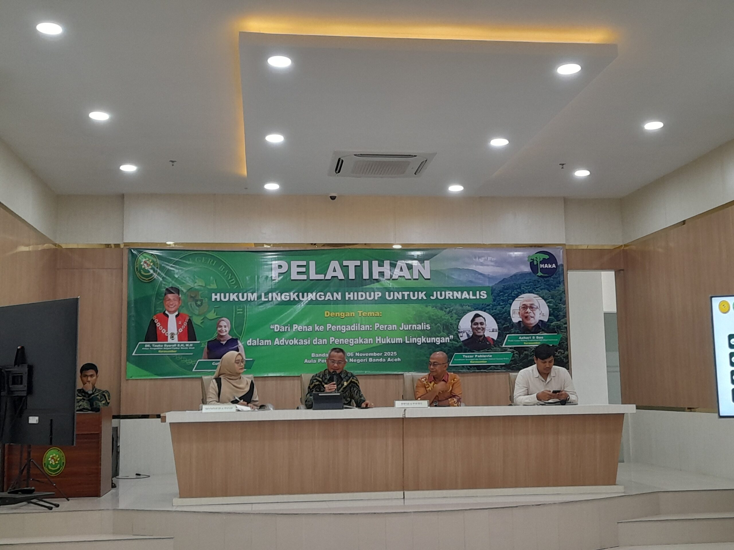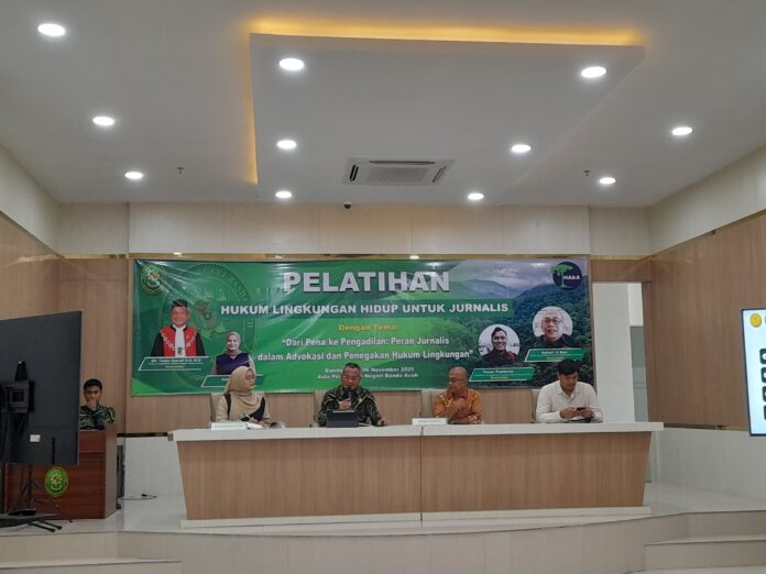 Banda Aceh (Waspada Aceh) – Pengadilan Negeri (PN) Banda Aceh bersama Yayasan HAkA (Hutan, Alam dan Lingkungan Aceh) serta Perhimpunan Jurnalis Peradilan menggelar Pelatihan Hukum Lingkungan Hidup untuk Jurnalis, di Aula PN Banda Aceh, Kamis (6/11/2025).