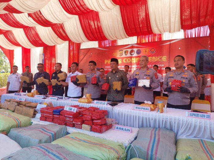 Acara turut dihadiri perwakilan BNN Provinsi Aceh, Bea Cukai Aceh, Bupati Gayo Lues Suhaidi, serta unsur Forkopimda.