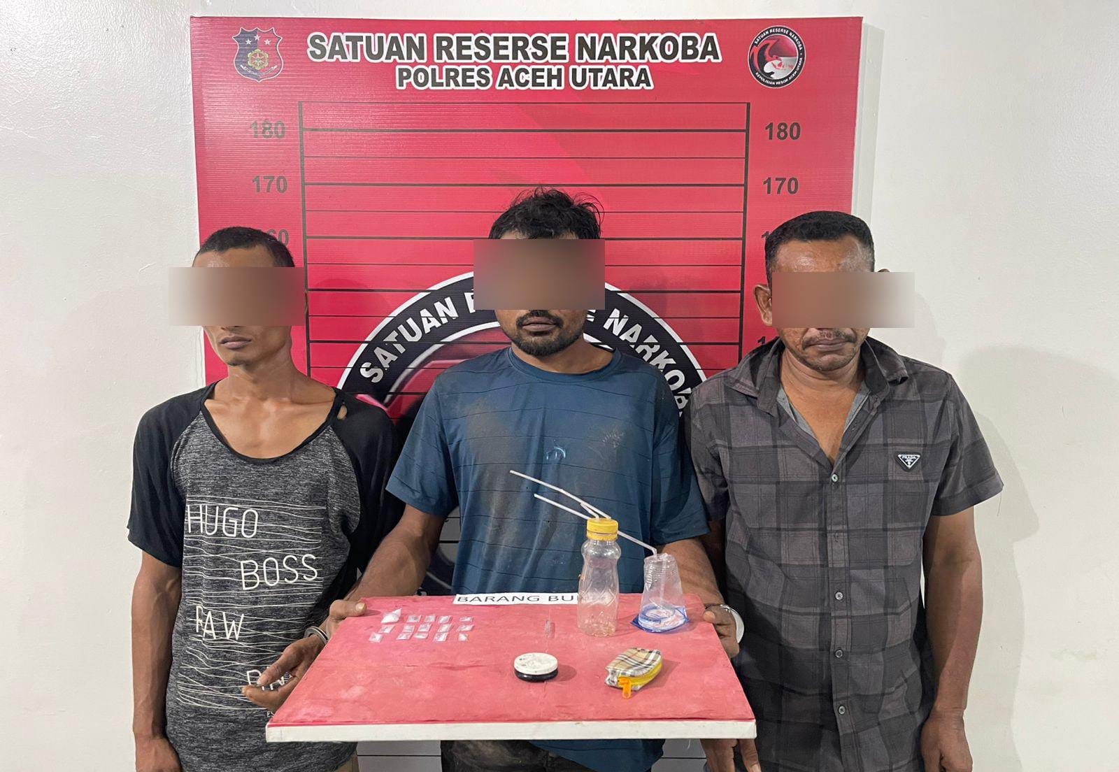 Aceh Utara (Waspada Aceh) – Satuan Reserse Narkoba (Sat Resnarkoba) Polres Aceh Utara berhasil menangkap tiga pria terkait kasus penyalahgunaan narkoba jenis sabu. Penangkapan dilakukan di dua lokasi terpisah di Kecamatan Tanah Jambo Aye, Kamis malam (9/10/2025).