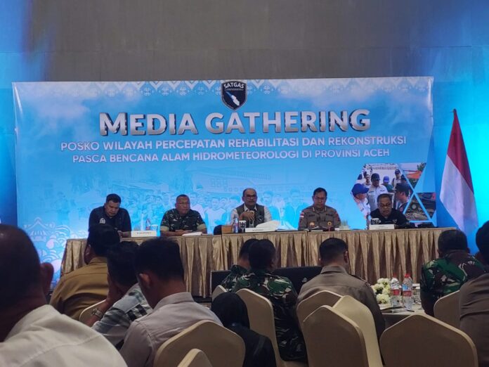 Pernyataan itu disampaikan saat menjawab pertanyaan Ketua Serikat Media Siber Indonesia (SMSI) Aceh, Aldin NL dalam kegiatan media gathering Posko Wilayah Percepatan Rehabilitasi dan Rekonstruksi Pascabencana di The Pade Hotel, Selasa (7/4/2026).