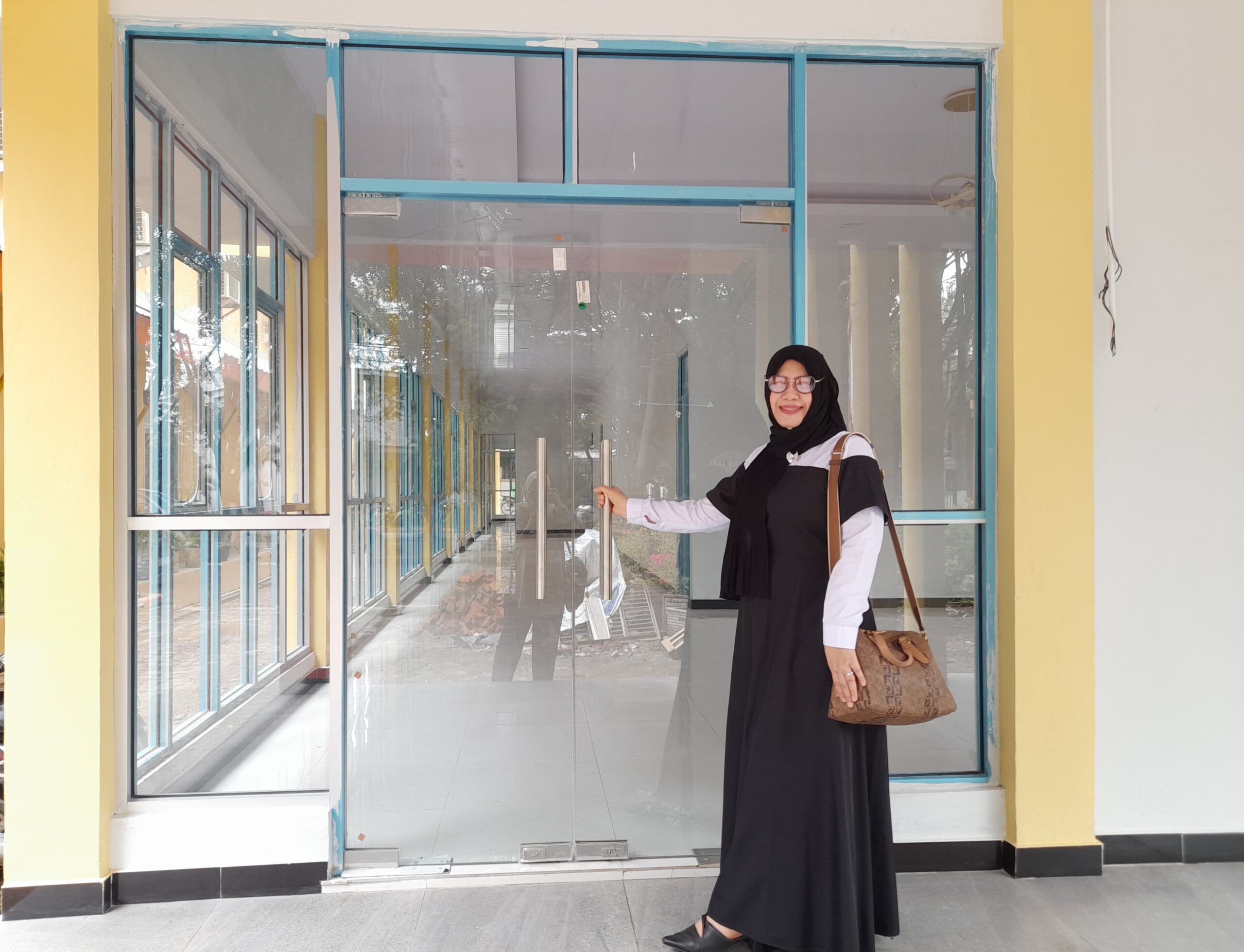 Ket Foto: Kepala Sekolah SMK N 3 Banda Aceh, Sufriani, saat menunjukan Gedung ULP yang sudah siap dibangun. (Foto/Kia)