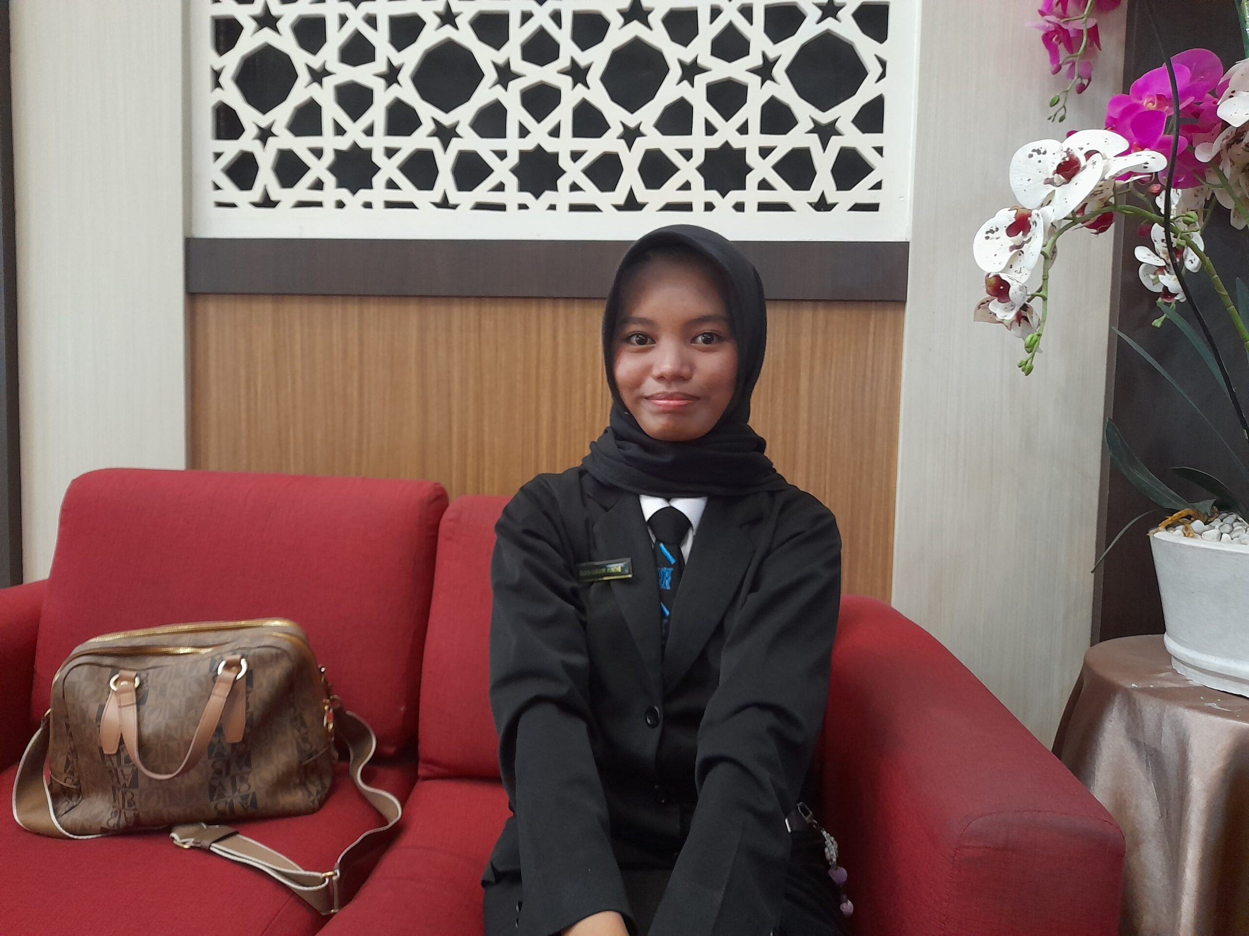 Ket Foto: Olivia Sanjani Munthe, siswi Jurusan ULP SMK N 3 Banda Aceh. (Foto/Kia)