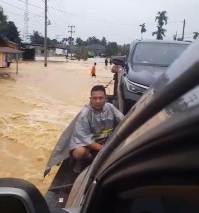 Langsa (Waspada Aceh) – Ratusan warga terjebak di jalan penghubung Langsa–Tamiang setelah banjir besar melanda Aceh sejak Rabu (26/11/2025) sore. Air setinggi dada orang dewasa menenggelamkan jalan, memutus akses transportasi, dan melumpuhkan fasilitas publik mulai dari ATM, telepon seluler, hingga rumah sakit.