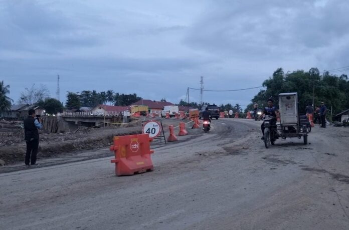 Jembatan tersebut mulai dapat dilintasi kendaraan sejak Jumat (12/12/2025), setelah oprit jembatan yang runtuh diterjang banjir selesai ditimbun dan dinyatakan fungsional.