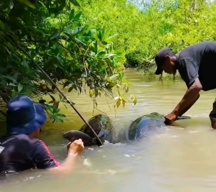 Aceh Tamiang (Waspada Aceh) – Warga Desa Pusung Kapal, Kecamatan Seruway, Kabupaten Aceh Tamiang, mengevakuasi dua ekor lumba-lumba yang tersesat di alur kecil kawasan tambak milik warga.