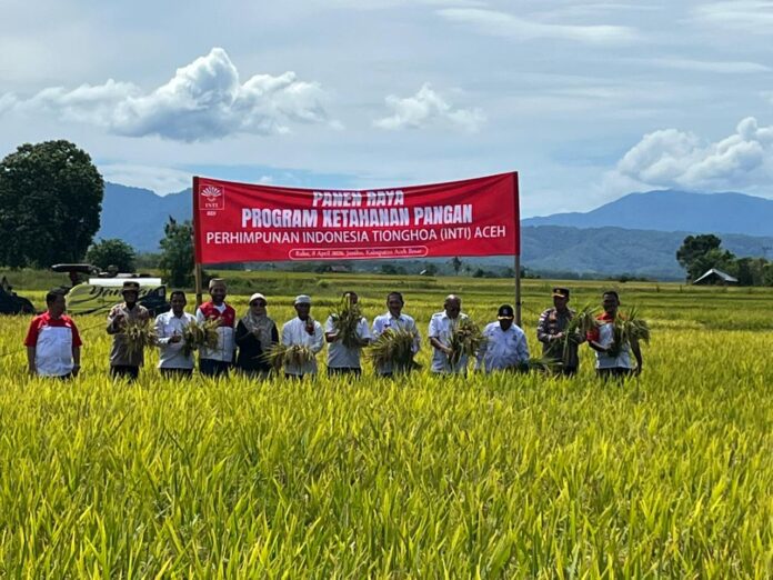 Aceh Besar (Waspada Aceh) – Perhimpunan Indonesia Tionghoa (INTI) Aceh menggelar panen raya Program Ketahanan Pangan di Blang Gampong Teureubeh, Kecamatan Kota Jantho, Aceh Besar, Rabu (8/4/2026).
